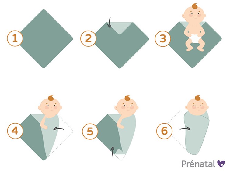 Je kunt op verschillende manieren inbakeren: met een multidoek of een inbakerzakje. Belangrijk is dat je erop let dat de beentjes vrij zijn, zodat ze kunnen bewegen. In het schema hieronder zie je hoe je je kindje veilig kunt inbakeren in een hydrofiel.