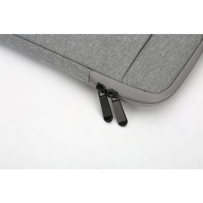 De laptoptas is niet alleen gemaakt van sterk polyester materiaal maar is ook waterafstotend. Aan de binnenkant van de laptoptas zit een zachte suède stof die je laptop een goede bescherming biedt tegen krassen en stoten. Door de extra vakjes aan de zijkant van de hoes kun je je snoeren en eventueel een muis of andere belangrijke spullen makkelijk opbergen. Deze hoes heeft ook een 2-way rits sluiting wat zorgt voor het makkelijk openen van je laptoptas via 2 kanten.